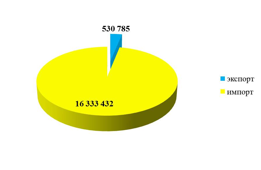 Импортная составляющая – 16 миллиардов 333 миллиона 432 тысячи рублей, а экспортная составляющая – 530 миллионов 785 тысяч рублей.