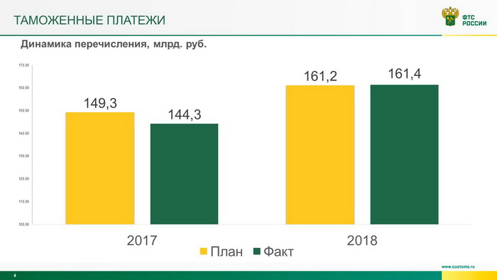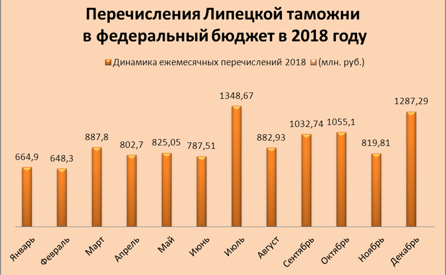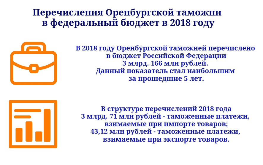 За 2018 год таможнями региона в доход федерального бюджета перечислено свыше 125 млрд. рублей (125 279, 29 млн. руб.). Плановое задание выполнено на 100%.
