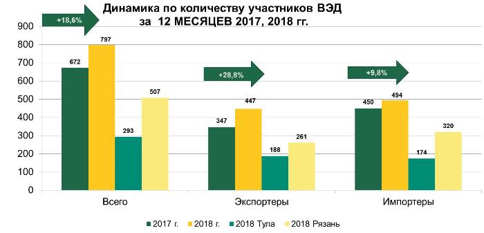 В Тульской таможне подведены итоги работы в 2018 году. Статистика внешнеэкономической деятельности свидетельствует об увеличении объемов внешнеторгового оборота, росте экономики и уровня инвестиционной активности, а также промышленного производства в регионе деятельности Тульской таможни – Тульской и Рязанской областях.
