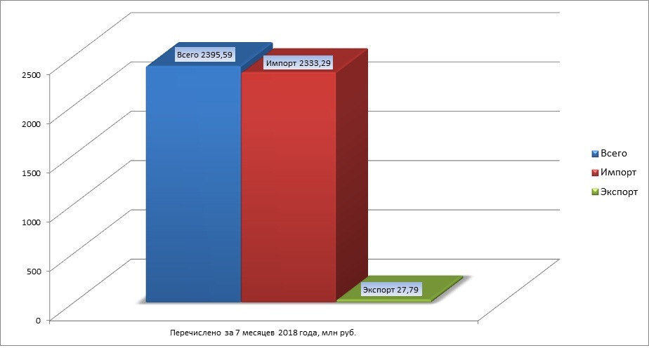 Всего в ММПО Москва-Внуково за указанный период 2018 г. сотрудники Московской таможни оформили на импорт почти 60 млн МПО (за весь 2017 г. – около 101 млн МПО). На экспорт оформлено около 1,7 млн МПО (за весь 2017 г. – около 1,9 млн МПО), что составляет 8 тыс. отправлений ежесуточно (5,2 тыс. в сутки по итогам 2017 г.).